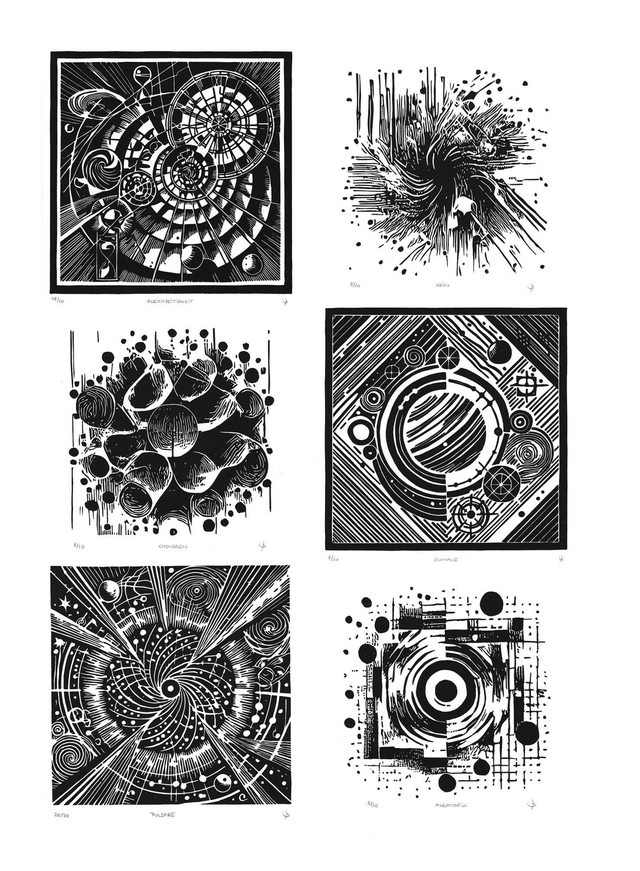 Linoldrucke werden in Handarbeit erstellt. Das verursacht Unregelmäßigkeiten in Farbe und Erscheinung, was den Reiz dieser Technik ausmacht und zu einzigartigen Bildern führt.
