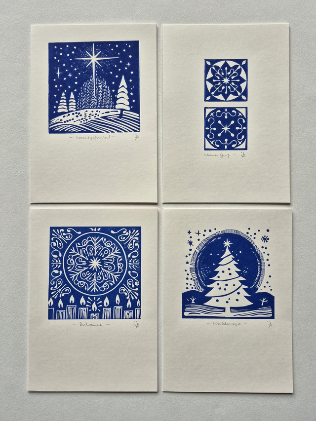 Diese Karte gibt es auch im gemischten 4er-Set "Blue Stars": https://sylviakrahl.sumupstore.com/produkt/4er-set-weihnachtskarten-blue-stars